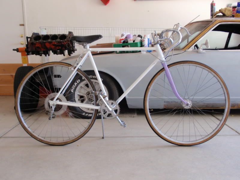 I would like to show you guys the '70's style Schwinn bike my friend Alfredo gave me. I restored it to almost brand new. For it to be an official Fixed Gear, i need to cop the rear "tri-spoke" Aerospoke wheels with the fixed single speed hub. Its not even 50% done yet, i still need to do some work to it.