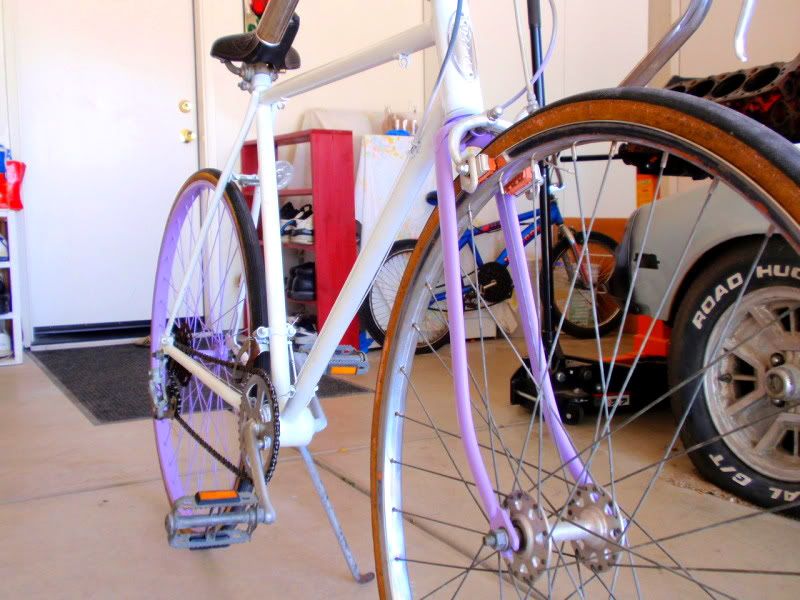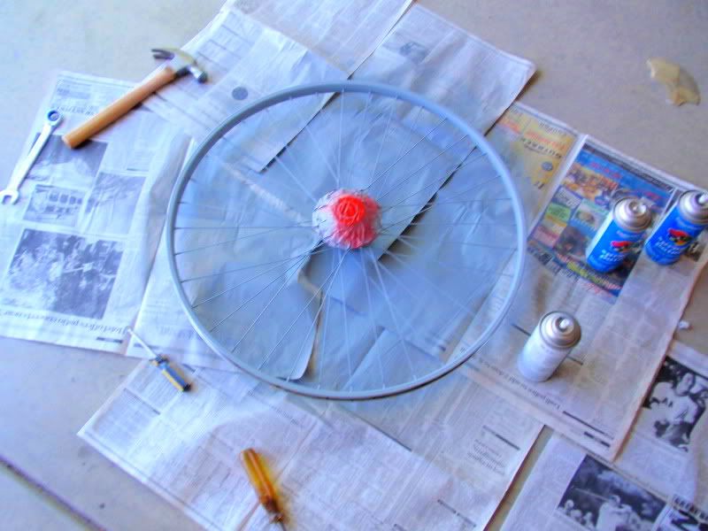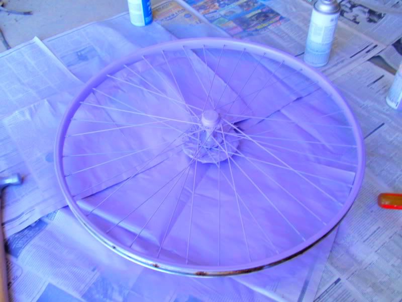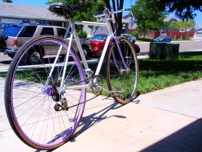 Well i was bored early this morning and i decided to repaint my bike. It looks a lot better with the rear rim painted too, but as i was putting on the tire i accidently stabbed my inner tube....ima need another one or at least some of that patching stuff. Ima put these newer, MOST recent pictures up on my Facebook soon. =P